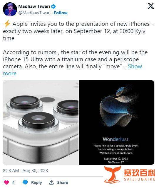 同期发布新品:苹果秋季发布会还将推出Apple Watch Series 9和新版AirPods Pro,三款新品可能共同升级健康监测、降噪等核心功能。