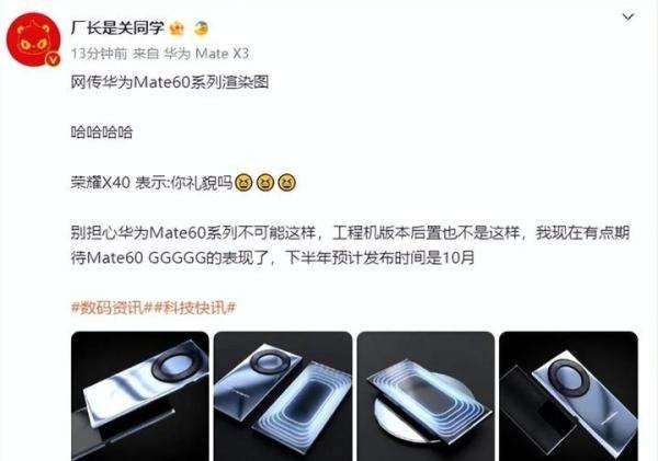 大V暗示与网友爆料:接近华为的大V@厂长是关同学称Mate60系列将于10月发布,并隐晦提及“5G”网络支持。网友进一步透露,华为5G工程测试机已在深圳实测,最快可能于年底推出。