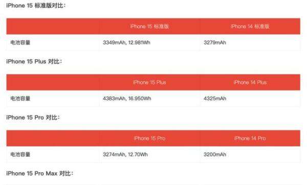 一、iPhone15系列电池容量提升的直接影响电池容量数据对比iPhone15系列电池容量较上一代显著提升: