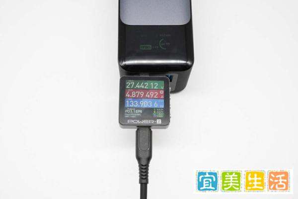 为充电宝充电时,输入功率达27.44V 4.88A 133.90W,验证了5A电流传输稳定性。