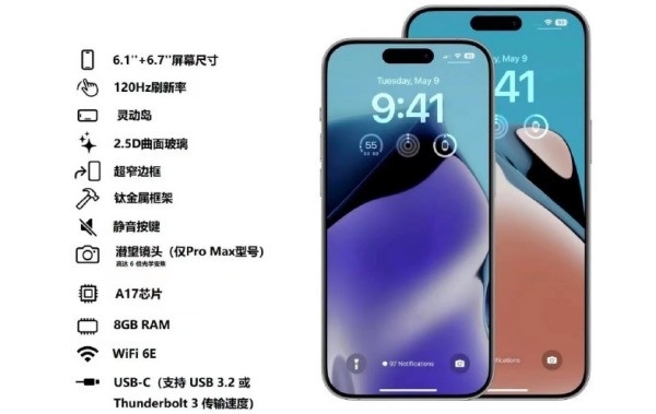 依然是与iPhone 14 Pro相同的直边圆角硬朗的设计风格,所以在颜色呈现上面会出现差异,这也是苹果旗舰型号设计首次出现差异化。