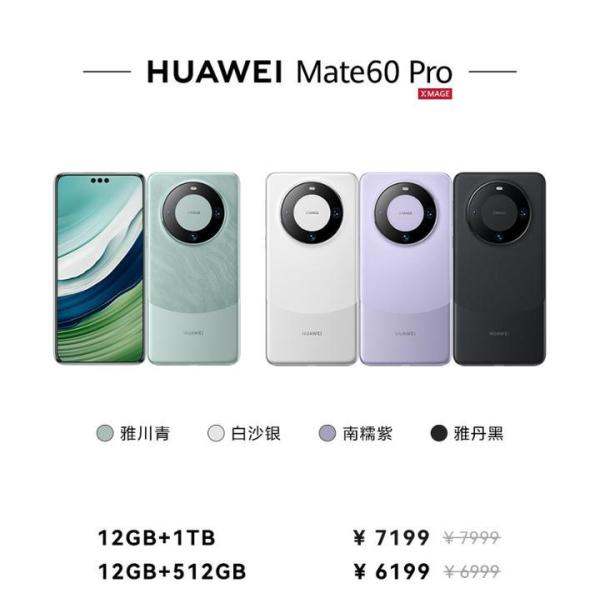 降价后的Mate 60 Pro,12GB + 256GB为5699元,12GB + 512GB为6199元,12 + 1TB为7199元。