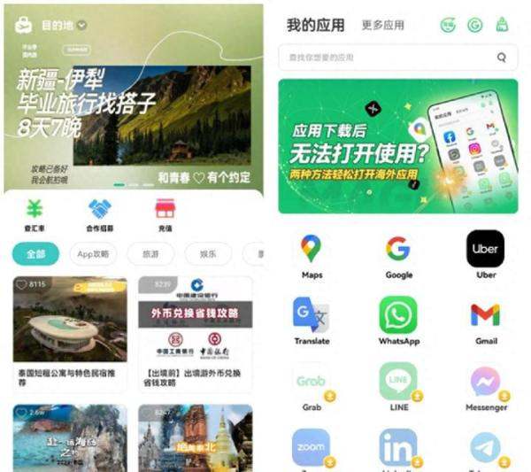 此外,出境易还提供了非常详细的应用介绍(中文),帮助用户快速了解每个应用的功能和使用方法。同时,它还根据热门旅游地列出了当地的主流应用,如泰国、德国、日本、美国等,让用户能够更有针对性地下载所需应用。