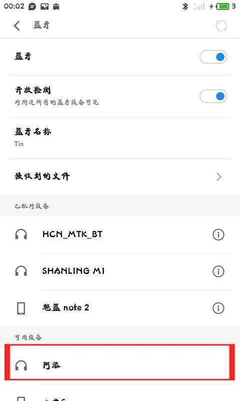 5、第五步:最后,在蓝牙接口的“可用设备”中,查找苹果耳机的“设备名称”。耳机的可用状态已显示。点击连接,Android手机可以使用苹果蓝牙耳机。