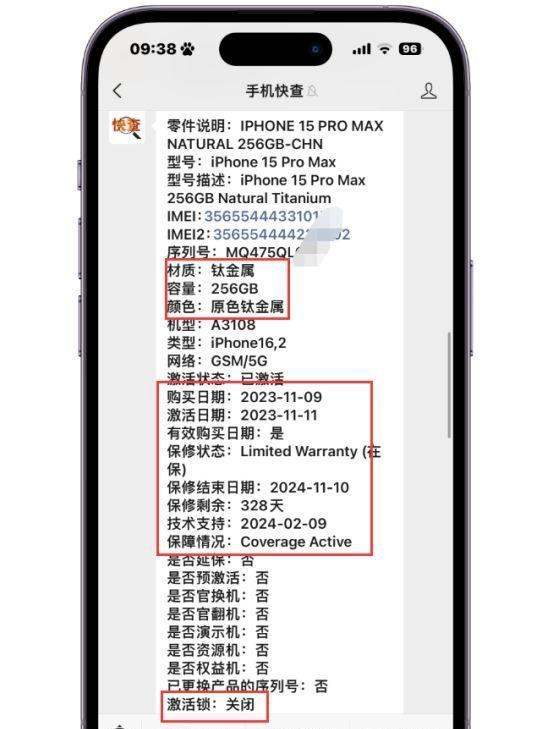 保修与激活状态:通过序列号查询整机报告,确认剩余保修期(如截图显示剩余328天)、是否为官换机/翻新机、激活锁是否关闭等。