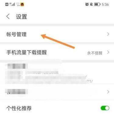 第三步:进入账号管理在设置界面中,向下滑动找到“账号管理”选项,点击进入账号绑定与管理页面。