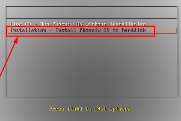 4、第四步把制作好的系统U盘插到电脑上,开机按F12选择U盘启动,在启动界面上选择“Installation Phoenix OS to Harddisk”,安装系统到硬盘,并回车。
