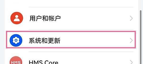 进入设置菜单打开手机主界面,点击【设置】图标,在设置菜单中选择【系统和更新】。
