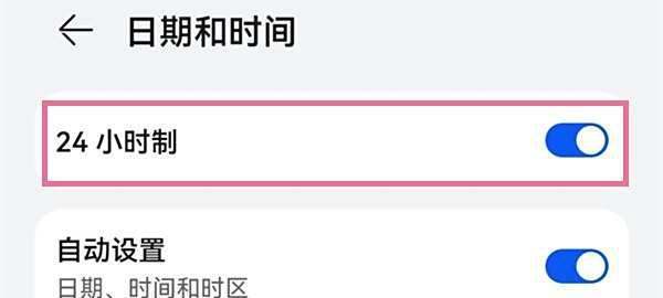 开启24小时制在【日期和时间】设置页面中,找到【24小时制】选项,将其右侧的开关滑动至开启状态(显示为蓝色)。