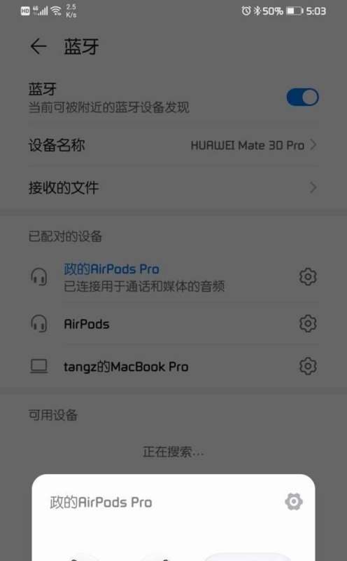在可用设备列表中,找到名为AirPods Pro(或其他型号名称)的条目。