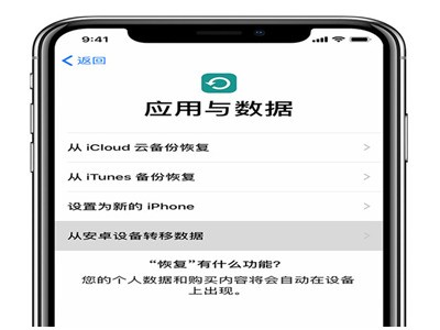 2、我们在设置苹果手机的时候,我们可以在【应用与数据】上看见“从安卓设备转移数据”这一选项,并选择点击。