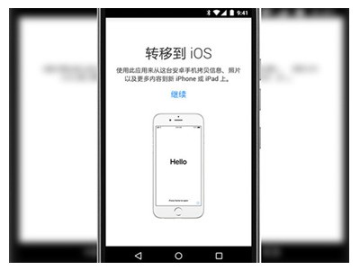 3、我们可以在安卓手机上,将安装好的【转移到IOS】APP打开,并轻点“继续”。在阅读完显示的条款以及条件之后,选择同意并且继续,随后就能看见“查找代码”以及“下一步”。