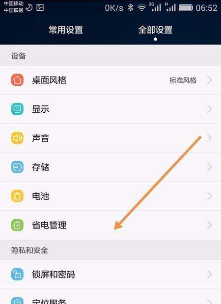 进入设置界面从手机主界面进入设置,在全部设置列表中找到省电管理选项。