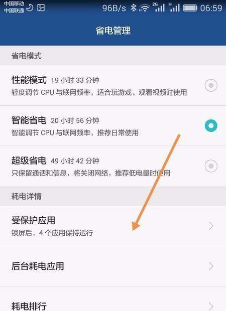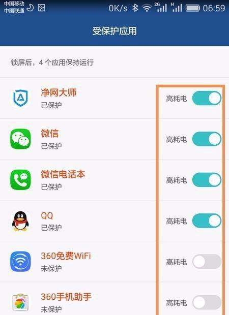 设置受保护应用返回省电管理界面,进入受保护应用列表。将常用应用(如微信、QQ等)设置为保护模式,确保它们在锁屏后仍能接收消息。