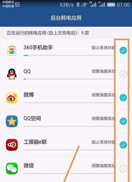 管理后台耗电应用进入耗电详情下的后台耗电应用列表,逐个打开不常用应用。