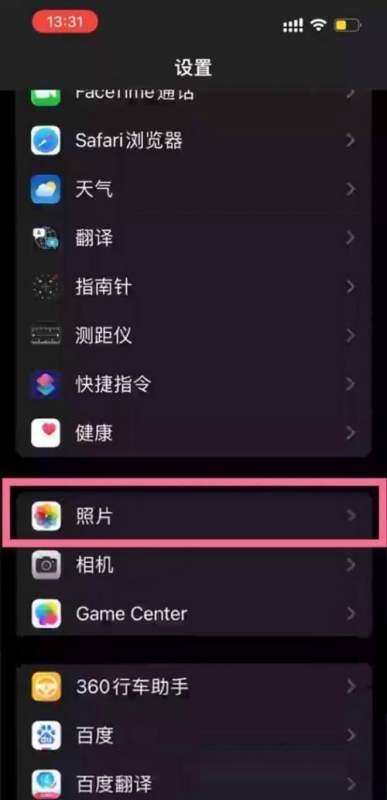 第一步:进入照片设置打开手机主界面的设置应用,在设置列表中找到并点击照片选项。