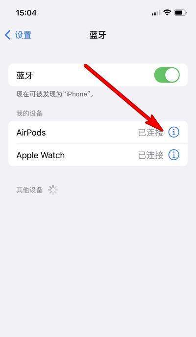 打开耳机设置界面在蓝牙设备列表中找到已连接的“AirPods3”,点击右侧的“i”图标进入耳机详细设置页面。