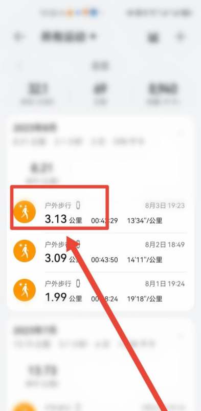 在记录列表中筛选【户外步行】类型,点击进入具体记录详情页。