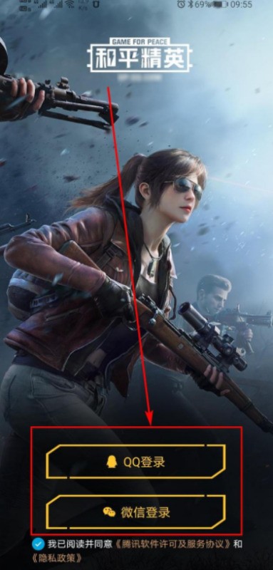 1、打开手机上下载安装好的和平营地APP,使用QQ或者微信账号进行登录。