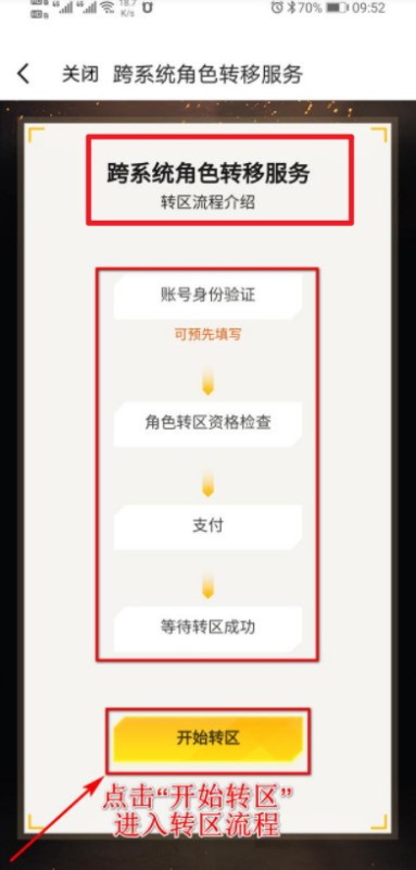 6、进入转区流程,进行身份验证、资格检查、支付费用,之后等待完成即可。