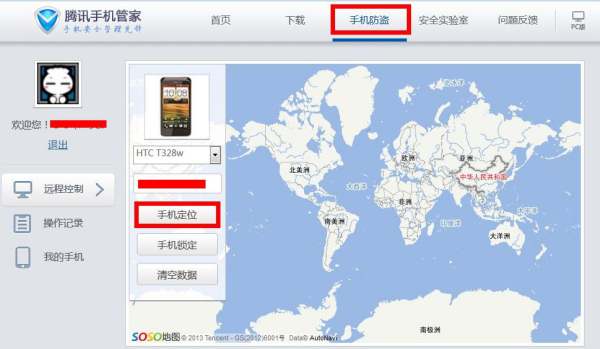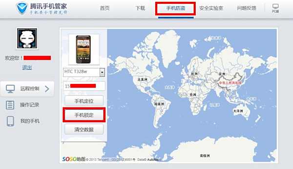 进入腾讯手机管家官网防盗页面,登录开启防盗时的QQ帐号,输入丢失的手机号码,进入防盗系统。