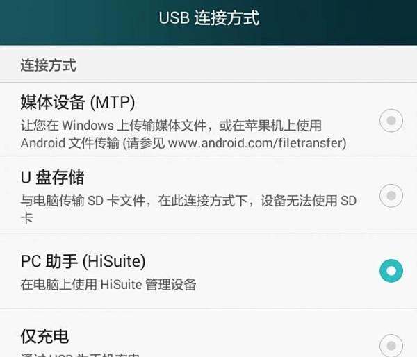 连接手机与电脑通过USB线连接手机和电脑,开启手机的“USB调试模式”,并选择“PC助手(hisuite)模式”进行连接。