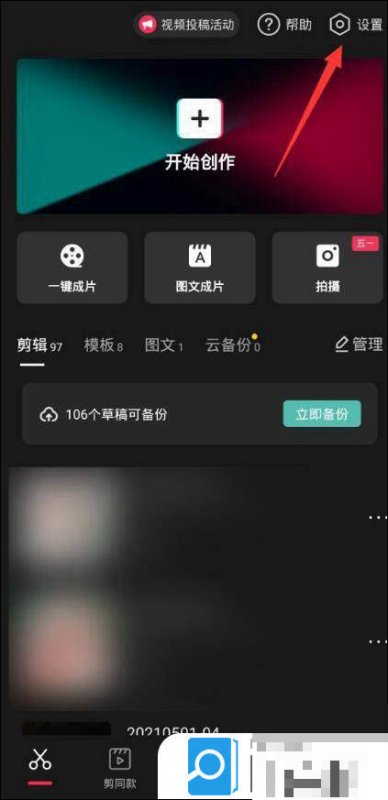 启动剪映专业版,点击右上角设置图标进入“全局设置”。