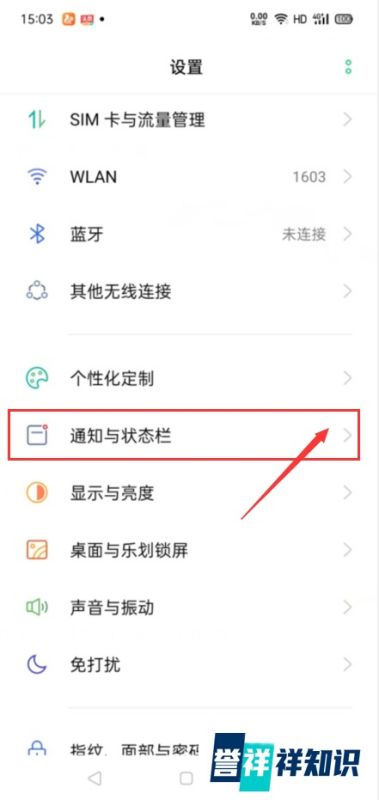 第二步:进入通知与状态栏设置在设置列表中滑动查找并点击通知与状态栏选项,进入相关功能管理页面。