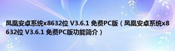 大家好,关于凤凰安卓系统x8632位 V3.6.1 免费PC版,凤凰安卓系统x8632位 V3.6.1 免费PC版功能简介这个很多人还不知道,现在让我们一起来看看吧!