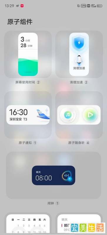 进入“原子组件”页面后,在众多组件中找到时间挂件,点击即可将其添加到桌面。