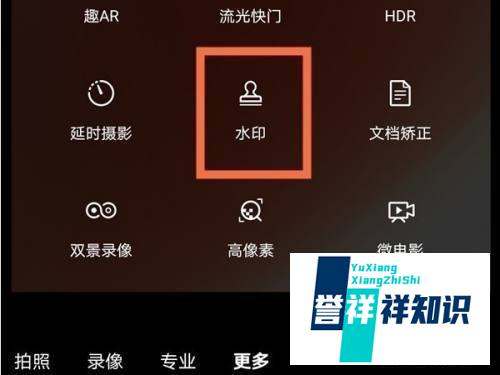 第二步:点击水印选项在“更多”功能菜单中,滑动查找“水印”功能(部分机型可能直接显示在菜单列表中,或需向左滑动才能看到),点击后进入水印设置界面。