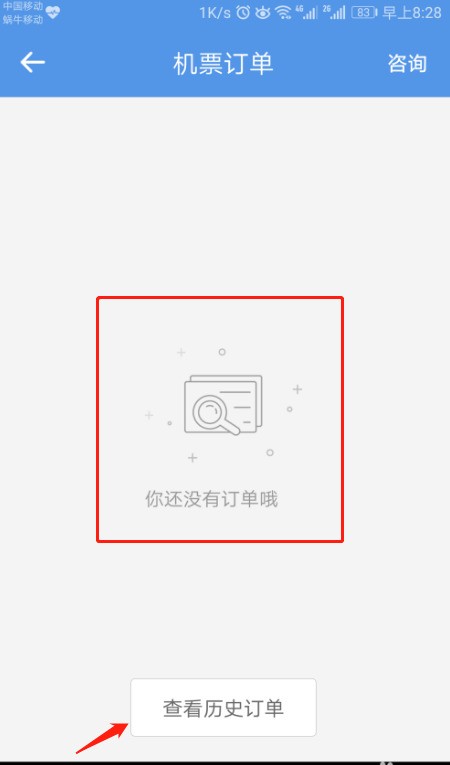 4、可以查看票单。 如果没有最近的订单,请选择“查看历史记录订单”。