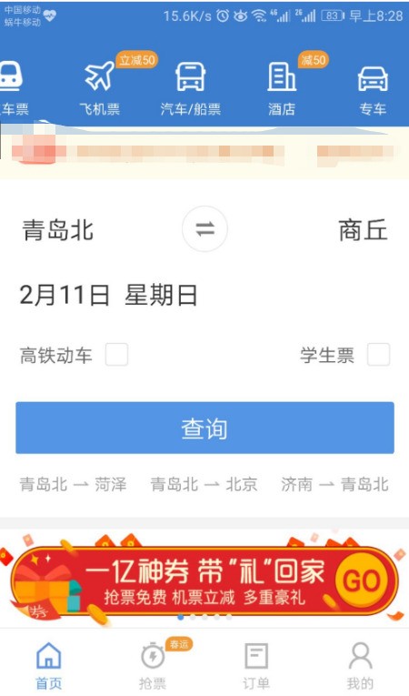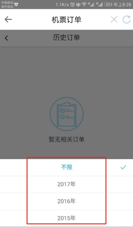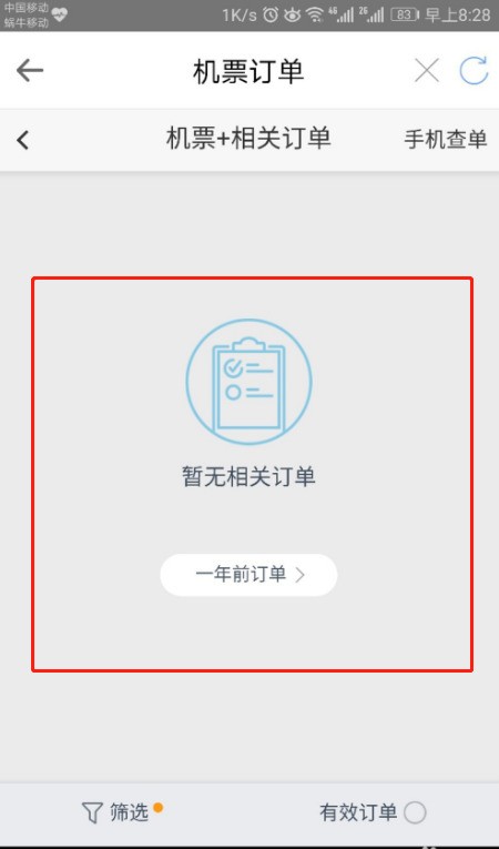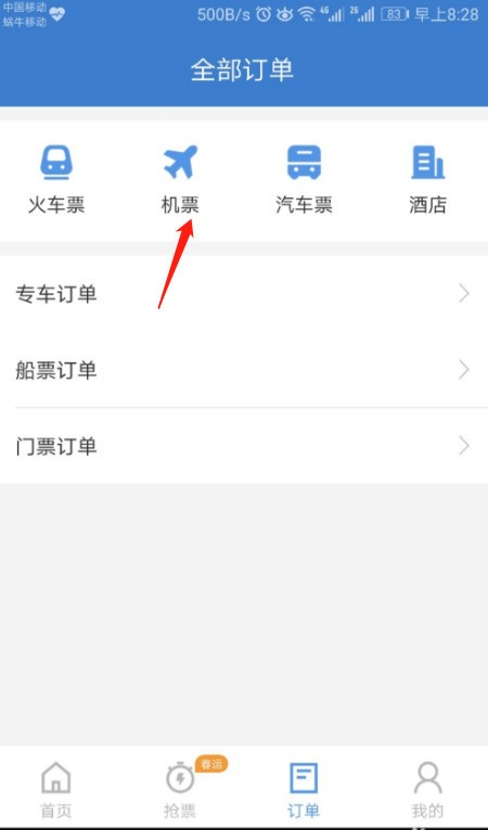 网上查之前订过的飞机票方法;以安卓手机智行APP查询为例: