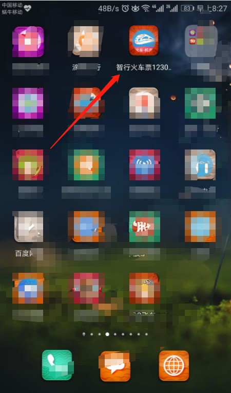 1、首先打开电话,然后单击以打开智行火车票软件。