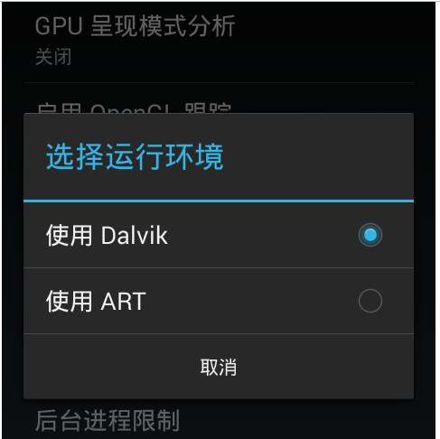 安卓4.4一般都是默认为adlvik虚拟运行环境,搭配高通cup和安卓5.0相比相对就处于弱势了,相对art模式,流畅度要差很多,当然也可以手动开启art模式,进入设置---关于手机---软件版本---内部版本号点击7次,开启开发者选项,回到设置界面,进入开发者选项,找到选择运行环境,改为art模式重启手机即可。