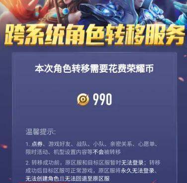 确认转移条件并支付费用系统会检测账号是否符合转移条件(如账号等级、点券余额、战队关系等),需支付990荣耀币(1元=10荣耀币)作为手续费。