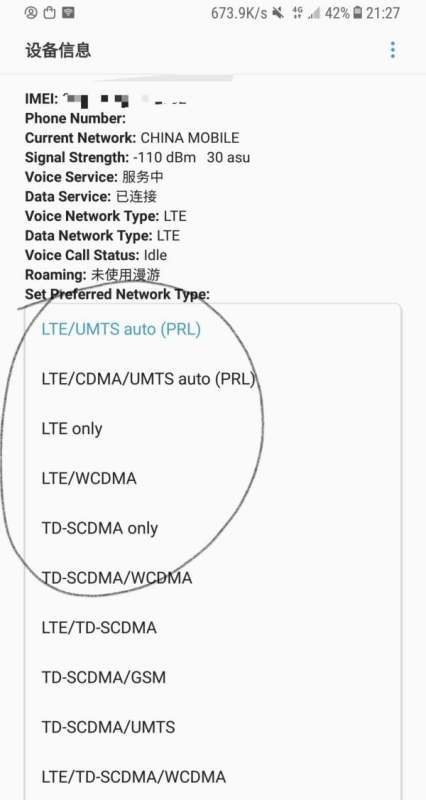 4G网络:选择LTE only。