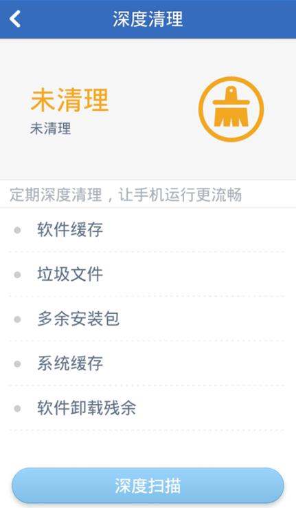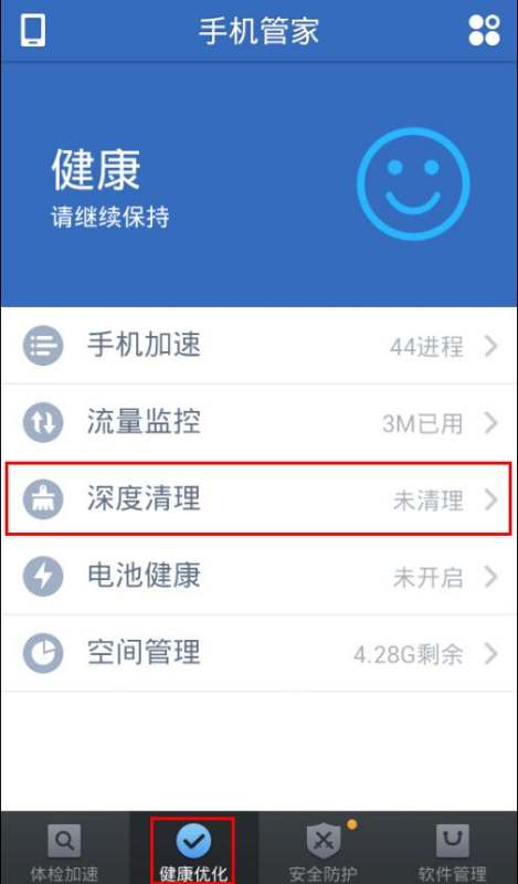 3.深度清理。管家深度清理针对软件缓存、垃圾软件、多余安装包、系统缓存、软件卸载残余等多垃圾类型提供了专业解决方案,进入管家—健康优化—深度清理,即可一步清理到位,提升手机运行速度节省空间占用。