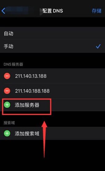 进入设置后,找到并点击配置DNS,选择手动配置选项,点击添加服务器。