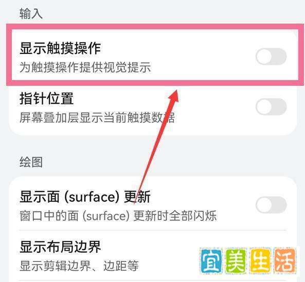关闭“显示触摸操作”在【开发人员选项】界面中,通过滑动屏幕找到【显示触摸操作】功能,其右侧有一个开关按钮。点击该开关,使其变为灰色(关闭状态)。此时,录屏时屏幕上的小白点将不再显示。