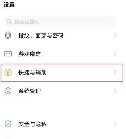 进入快捷与辅助:在设置菜单中滑动查找,点击快捷与辅助选项(部分机型可能显示为“更多设置”或“系统管理”)。