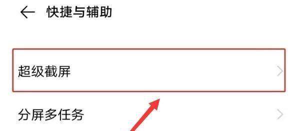选择超级截屏:进入快捷与辅助页面后,找到并点击超级截屏功能(该选项通常包含录屏、截屏等工具)。