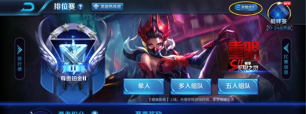 2、在排位的右上角有一个 荣耀战区 ,点击王者荣耀战区的入口,点击一下。