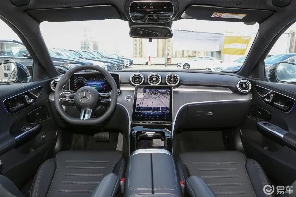 奔驰C级内饰采用环抱式布局,12.3英寸仪表盘+11.9英寸竖式中央屏幕,搭载MBUX车机系统,4G车机网络,支持车机OTA,配备高德车载导航地图,支持CarPlay和Android Auto手机互联/映射。L2级别辅助驾驶系统,前后共12个超声波雷达。