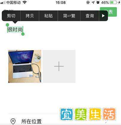 方法一:先打字再替换(适用于安卓7.0.4以下版本微信)在朋友圈内容框中随便输入几个字(如“测试”)。