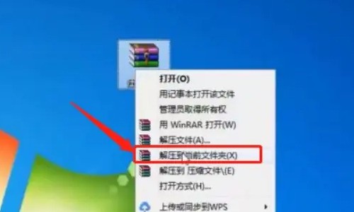 2、这时使用鼠标右键点击需要解压的压缩文件,点击“解压到当前文件夹”。