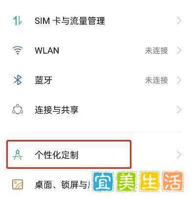 第二步:进入个性化定制在设置界面中滑动查找【个性化定制】选项,点击进入该功能模块。此模块集中管理桌面、图标、字体等视觉相关设置。