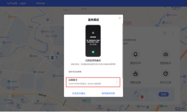 设备进入丢失模式后,可在“丢失模式”界面开启“远程锁卡”,远程为丢失设备中插入的SIM卡开启PIN码验证。重启设备或插拔SIM卡都将需要输入PIN码验证,以防止他人使用SIM卡盗取信息。