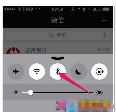 1、在手机控制中心这里也可以打开蓝牙。