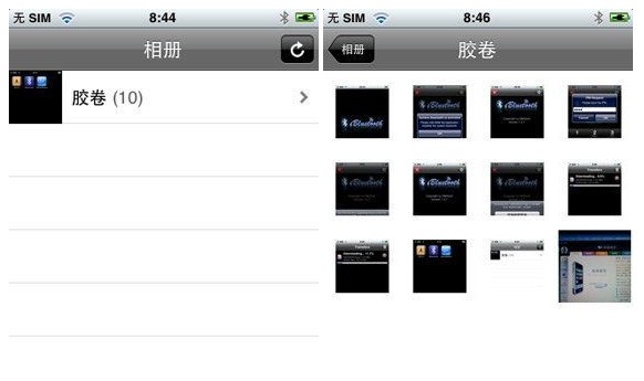 4、点击底部导航条的“Images(图片浏览)”按钮,进入相册浏览界面,点击“胶卷”选项即可浏览一切iPhone上的照片及截图。